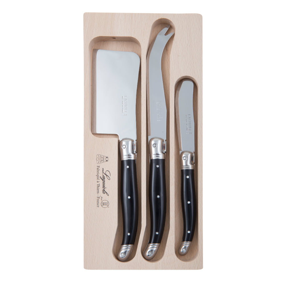 Andre Verdier Laguiole Debutant Black 3 Piece Cheese Knife Set -Black