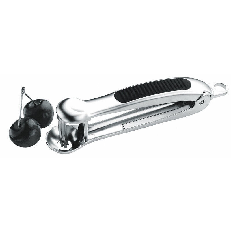 It's so easy to cleanly remove the stones from cherries and olives with this hinged pitting gadget from Avanti. Made from sturdy brushed satin stainless steel, it features a cupped holder for individual olives or cherries and a ridged plunging blade to push the pit from the fruit with one smooth motion. The hand grips are textured for a non-slip advantage and the gadget can be locked for storage.