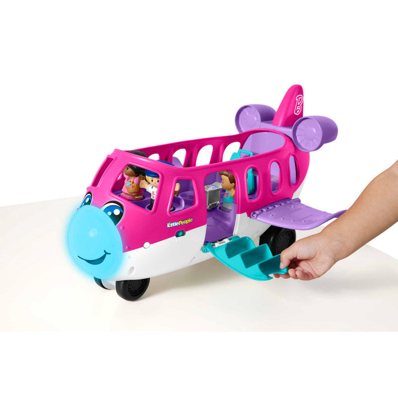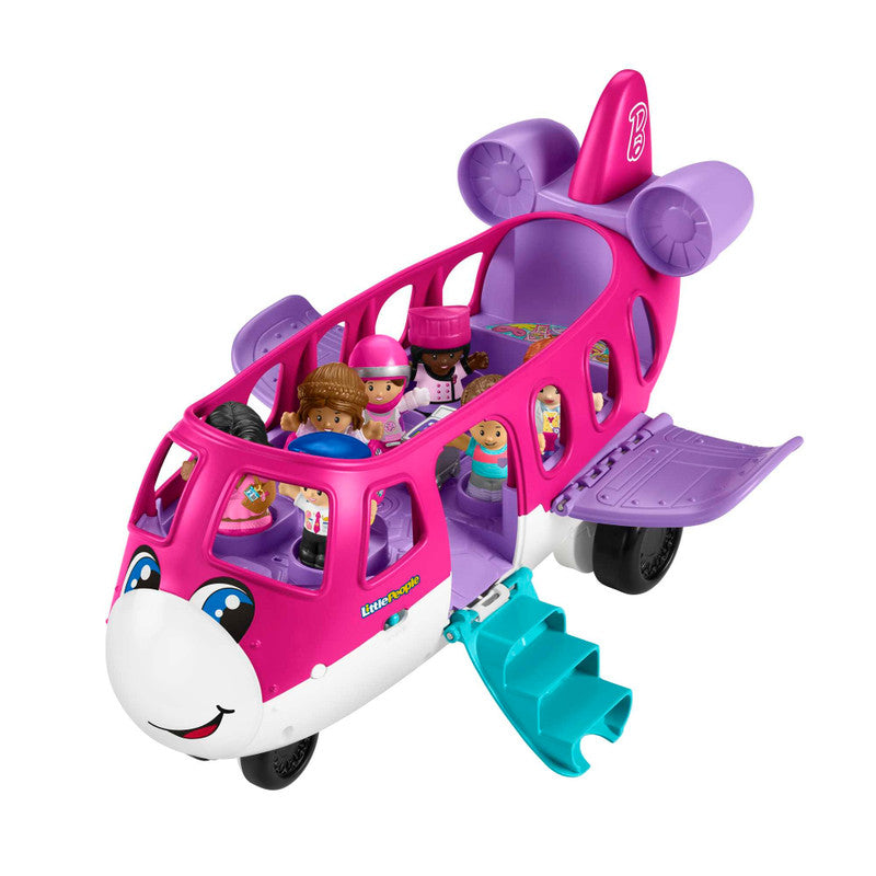 Toddlers can take to the skies for imaginative adventures. Barbie is dedicated to making play inclusive with a range of body types, skin tones, and varying disabilities. And with over 250 careers and inspiring playsets, the storytelling possibilities are endless. Toddlers can take to the skies for imaginative adventures with the Barbie® Little Dream Plane™ by Little People®. This push-along toy airplane features a light-up nose and fun music, sounds and phrases to enhance your toddler’s storytelling play. Kids can board the 3 toy figures onto the plane, stow luggage, serve beverages from the sliding cart, and send the crew and passengers soaring into all kinds of exciting Barbie® adventures.