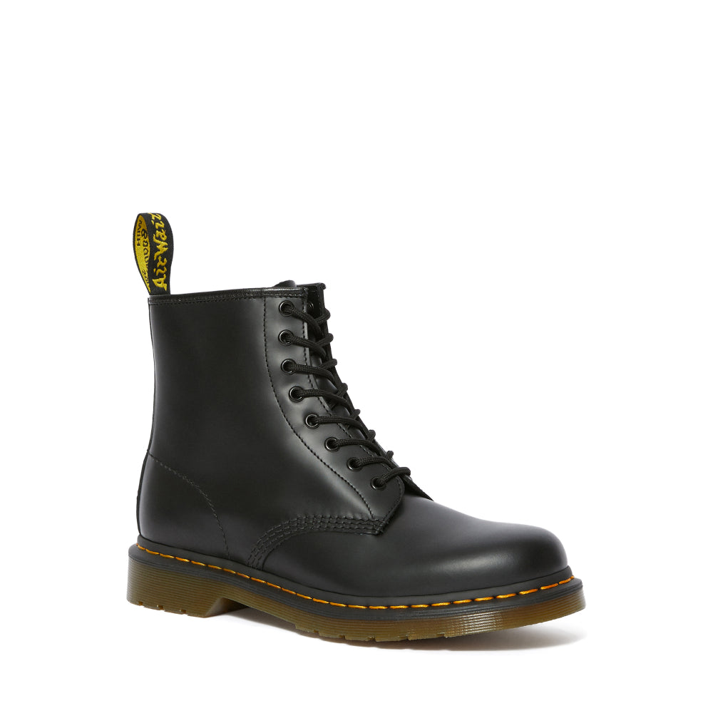 Its boot's recognizable DNA looks like this: 8 eyes, classic Dr. Martens Smooth leather, grooved sides, a heel-loop, yellow stitching, and a comfortable, air-cushioned sole. Built to last, this unisex boot is made using one of the finest methods of construction: the Goodyear Welt — which means the upper and sole are sewn together in our heat-sealed z-welt stitch. The boot sits on our iconic AirWair™ sole, which is oil and fat resistant with good abrasion and slip resistance, and is made with Smooth, a lightly textured, highly durable leather with a soft sheen. Use our Wonder Balsam to keep your boots clean, protect the leather, and keep it soft and supple.