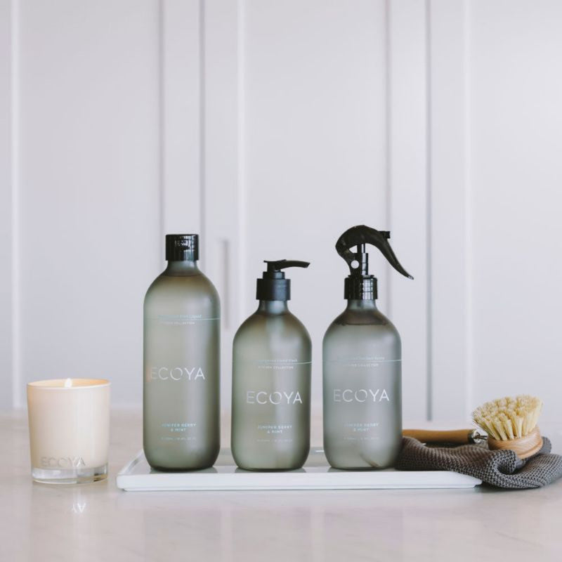 Fresh basil and matured blackberry are muddled with mint to make up this green-floral fragrance. Notes of peach and orange build a tropical fruity layer, creating a perfect bouquet for kitchen cleaning.