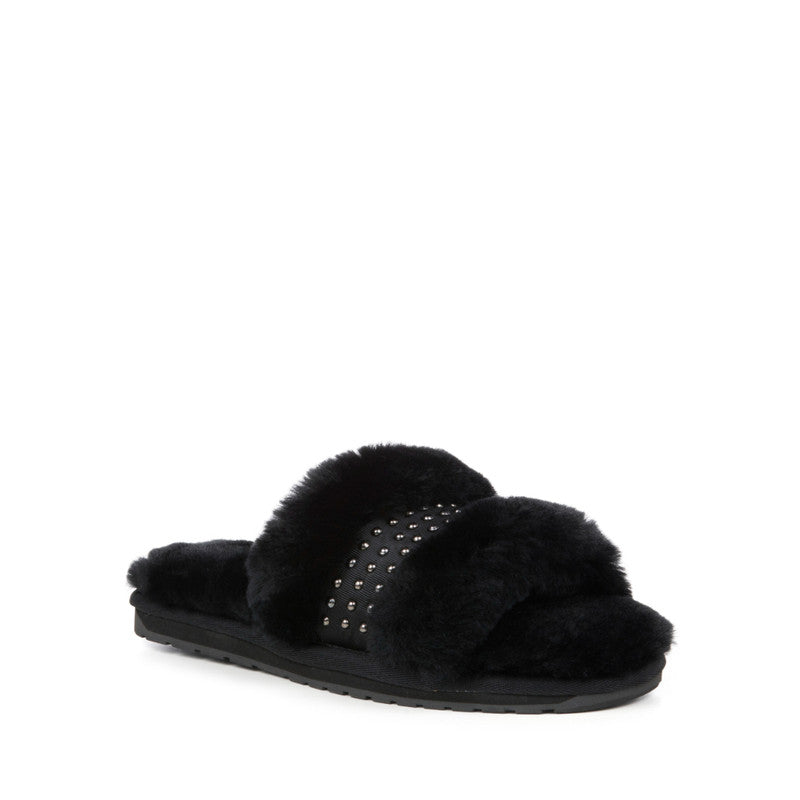 All over studded tape detail and using luxuriously soft Australian sheepskin on a rubber outsole, these slippers can be worn inside and out.