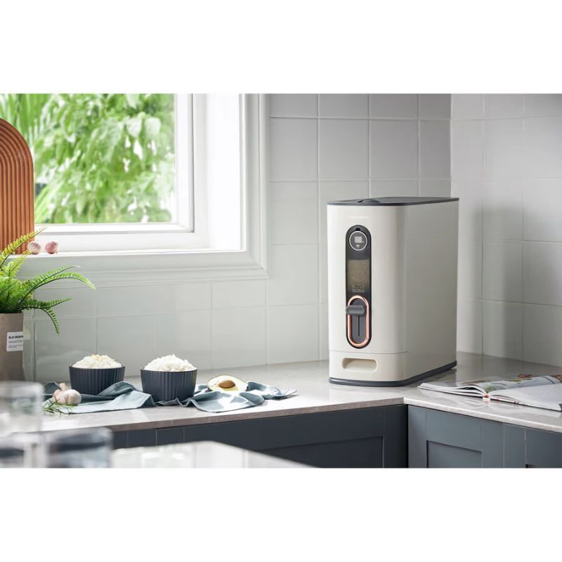 The Morphy Richards Auto Rice Dispenser will keep your rice sealed and covered and at the press of the dial will dispense enough rice for 1-2 bowls. Made from food grade plastic this rice dispenser does not need AC power, only a 3V button battery to power the intelligent automatic timer to prompt a replenishment of rice every 21 days.
