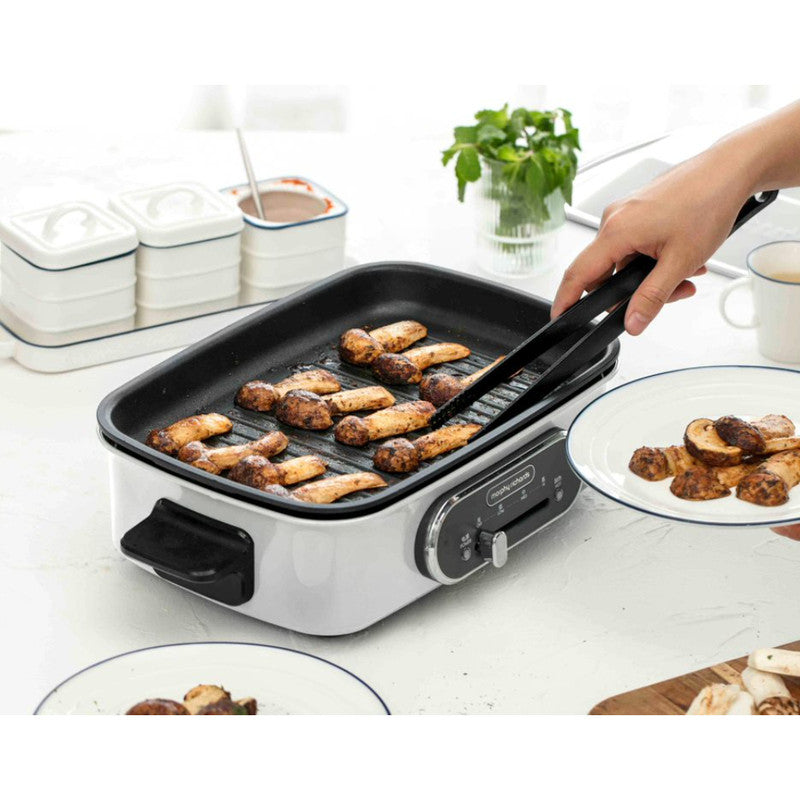 - Grilling, slow cooking, frying and steaming plus cook 2 meals in the dual pan. Use the handles on the pans to switch them around with ease