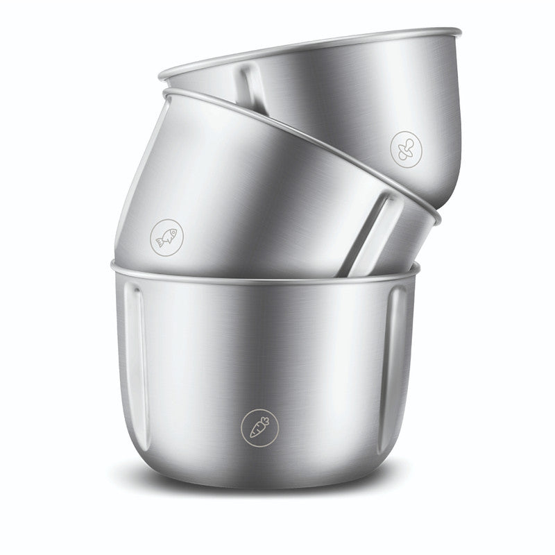 - Stainless steel stackable bowls in 3 sizes: 0.8L, 1.2L, 1.5L