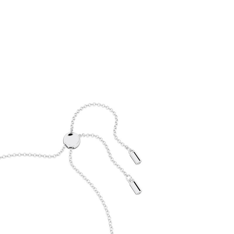 This rhodium-plated bracelet by Swarovski is an expression of eternal love. It features a twin element showing a heart and an infinity symbol intertwined. A single, bright stone adorns the infinity symbol, adding a brilliant touch to the design. This Swarovski bracelet is the perfect gift for an important woman in your life.