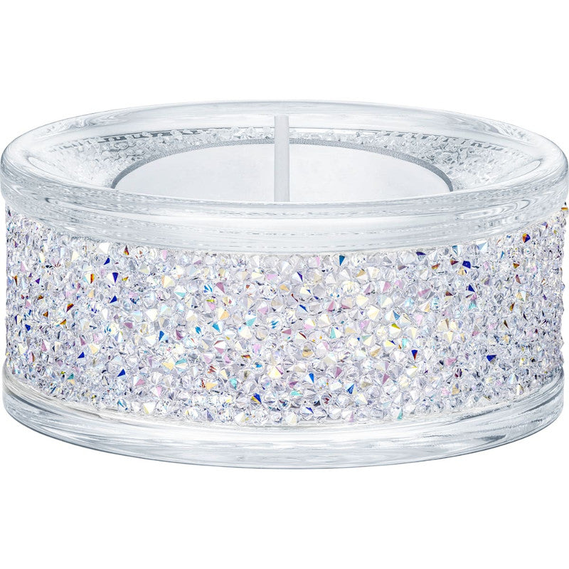 Embellished with over 1,500 Swarovski crystals set in the Crystal Rocks technique, this contemporary glass tea light holder shines brightly in our signature Aurora Borealis effect. Certain to add sparkle to any room; it will create a glamorous atmosphere, day and night.