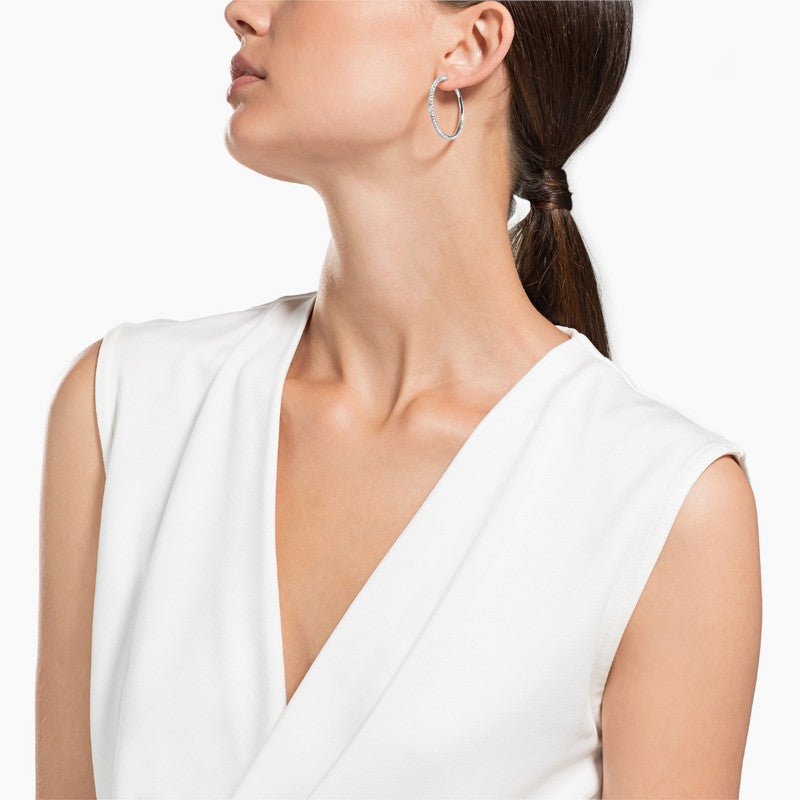 Swarovski Silver Tone Hoop Earrings, White, Rhodium-plated